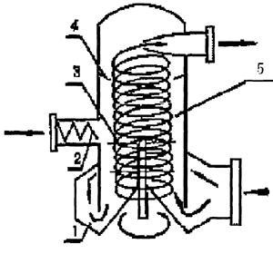 1、熱風分配器 2、螺旋加料器 3、攪拌器 4、分級器 5、旋轉干燥室